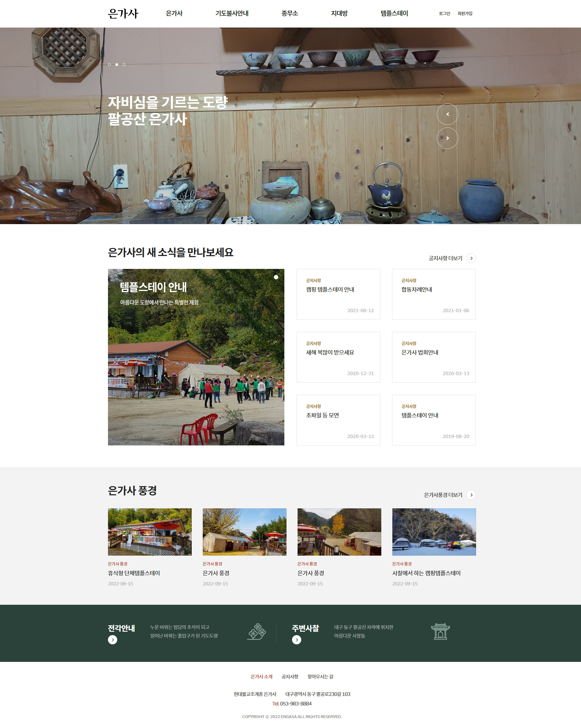 전통과 현대의 조화로움으로 지혜를 배우는 곳 기도와 수행으로 행복한 곳, 문화로 화합하고 소통하는 곳, 부처가 되는 곳이 바로 마음의정원 은가사입니다.