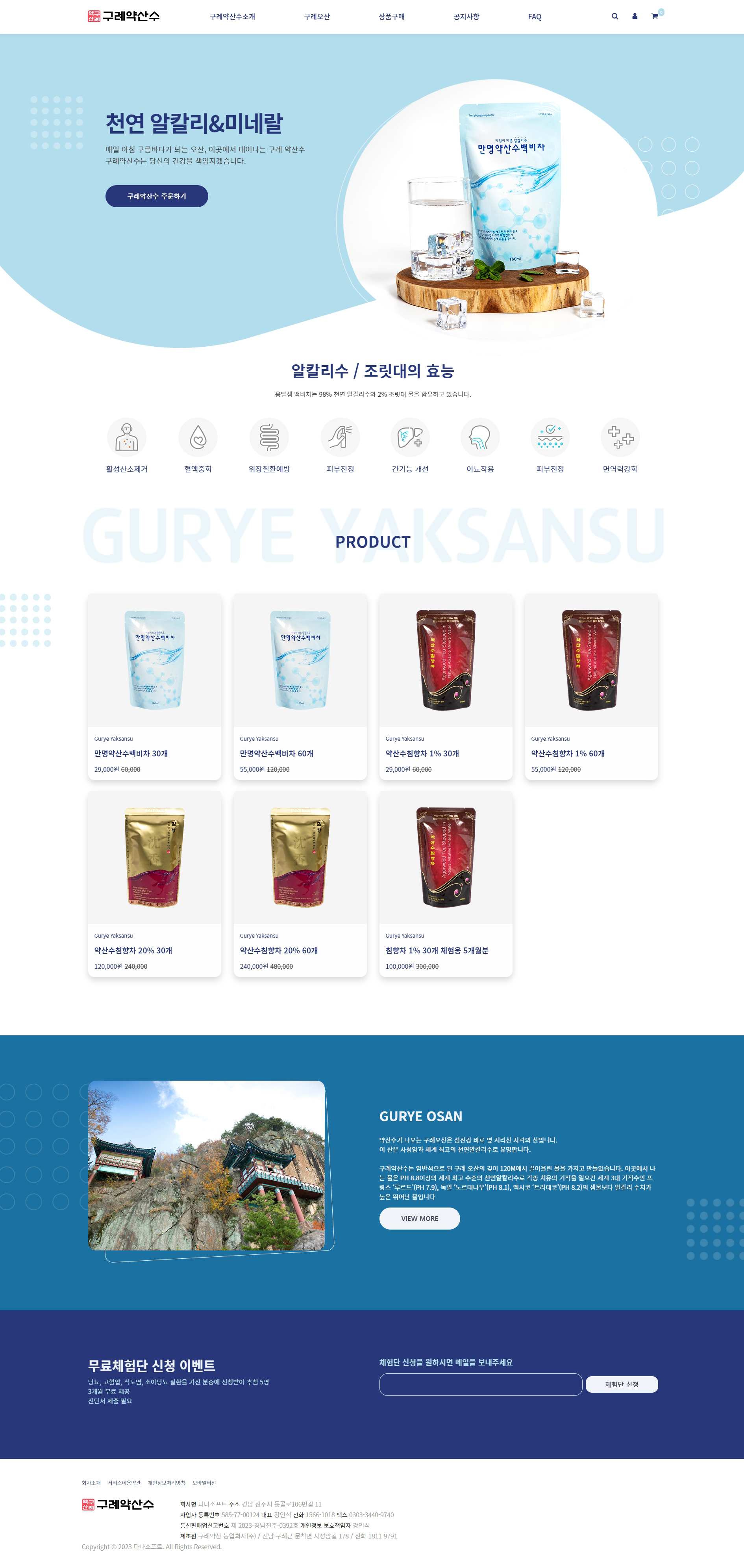 구례약산수는 암반석으로 된 구례 오산의 깊이 120m에서 끌어올린 물을 가지고 만들었습니다.