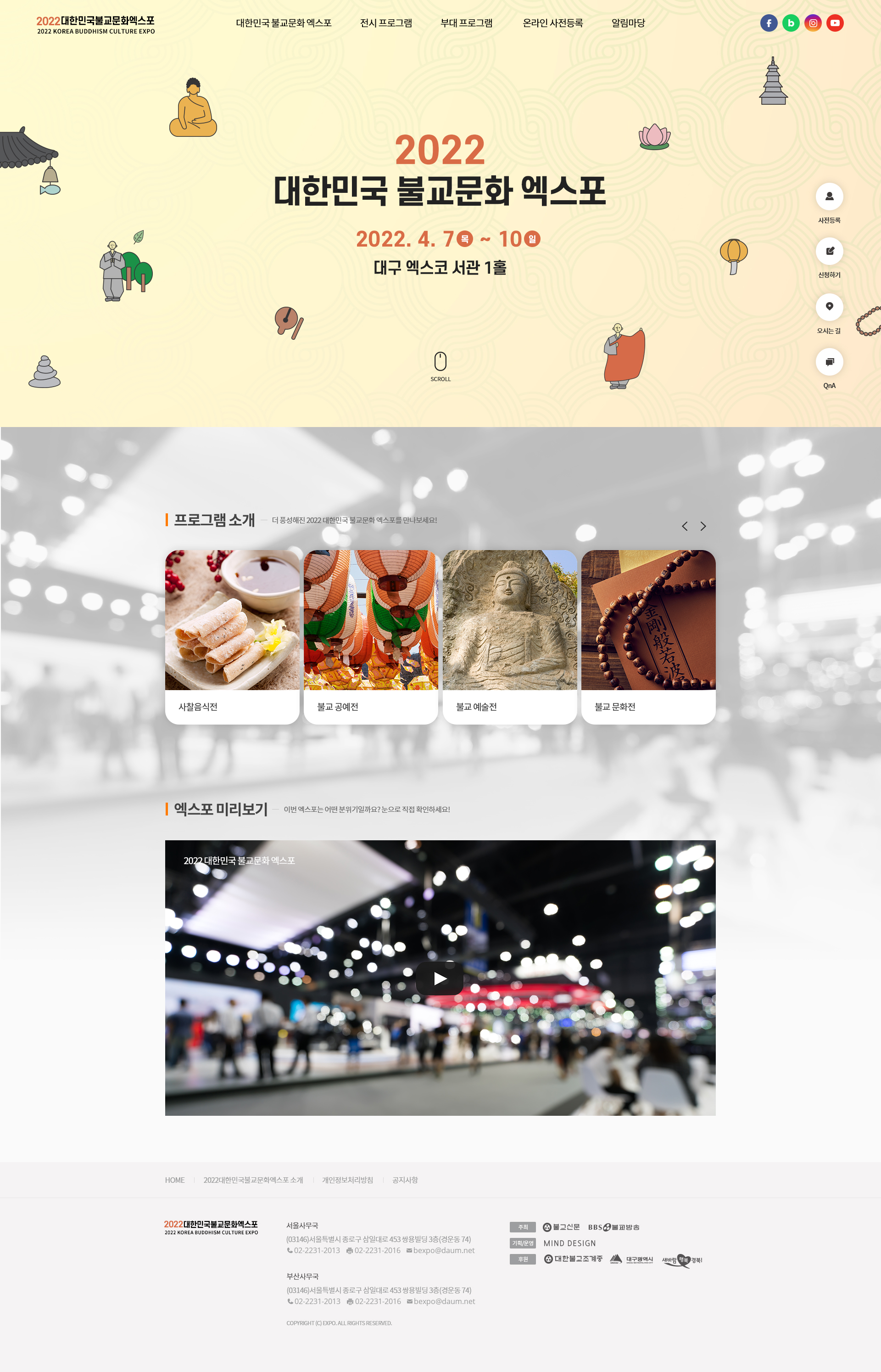 한국불교와 전통문화산업을 한자리에 만나는 자리 <대한민국불교문화엑스포> 한국불교와 우리 전통문화가 살아 숨쉬는대구경북에서 함께 보고, 듣고, 체험하는 불교문화엑스포를 시민과 지역사회가 함께 만들어갑니다.
