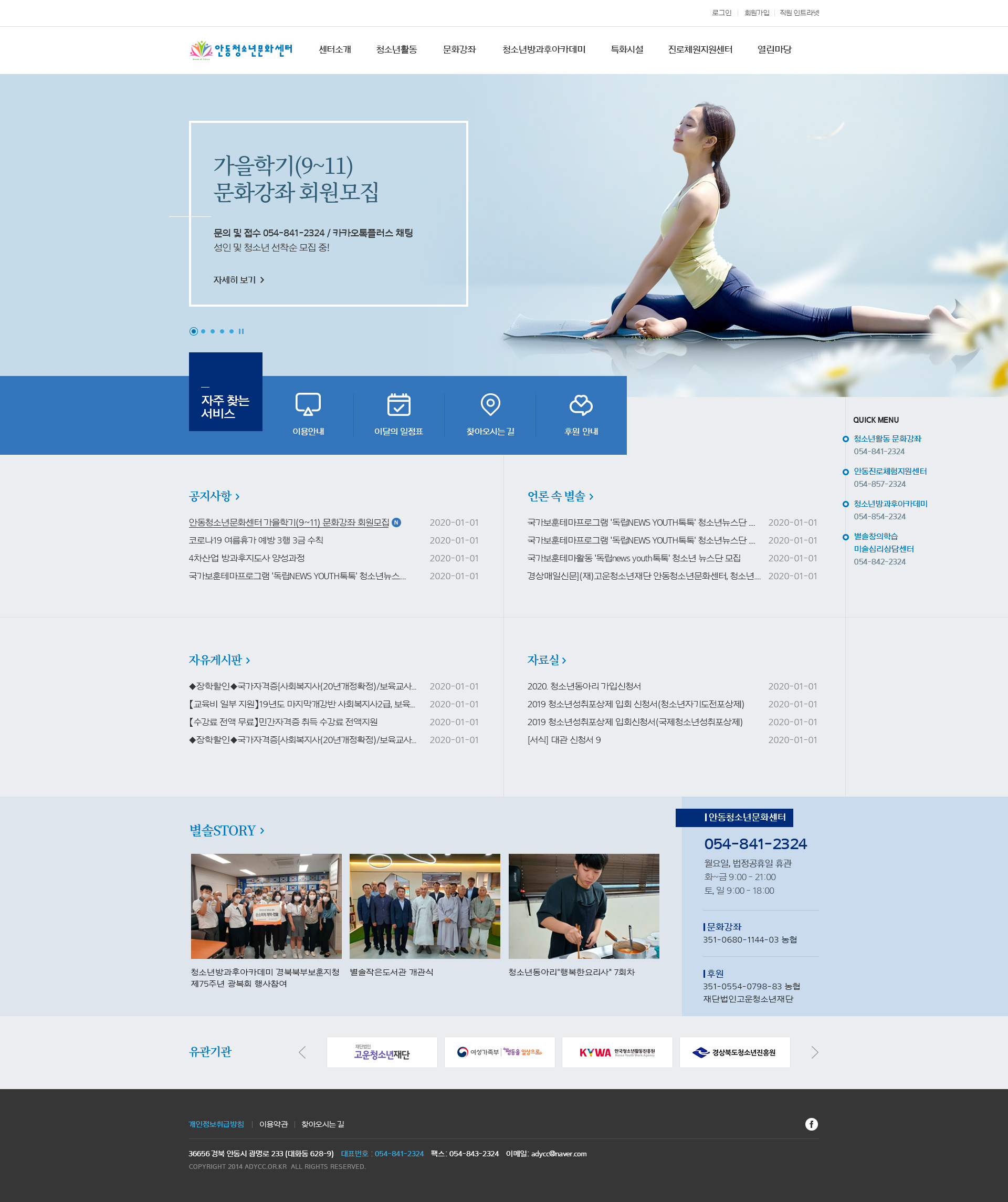 안동청소년문화센터는 안동시가 지원하고, 재단법인 고운청소년재단이 운영하는 청소년수련시설(청소년문화의집) 입니다. 청소년들의 잠재능력과 창의력을 최대한 발휘할 수 있는 프로그램으로 변화하는 환경 속에서 ‘청소년의 가치’에 초점을 맞춰 프로그램을 제공/운영 합니다.